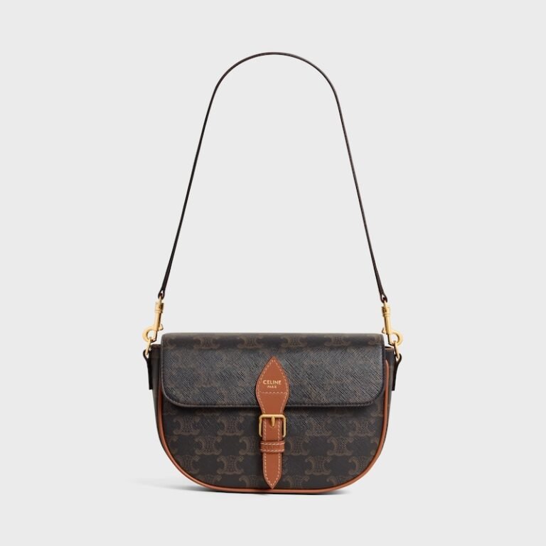 Vintage saddle silhouette, iconic Triomphe monogram, tan trim & gold hardware, elegant for daily wear