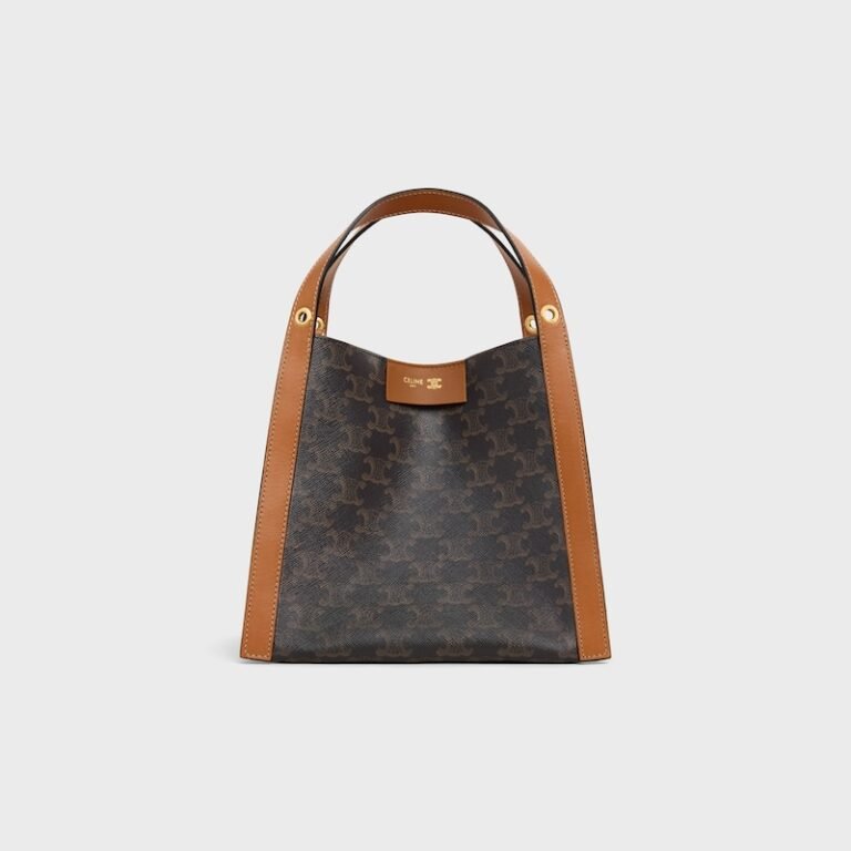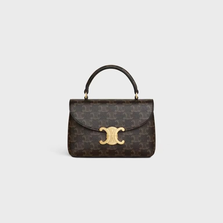 Celine Ava Triomphe Canvas Handbag with Tan Calfskin Trim Gold – Tone Hardware