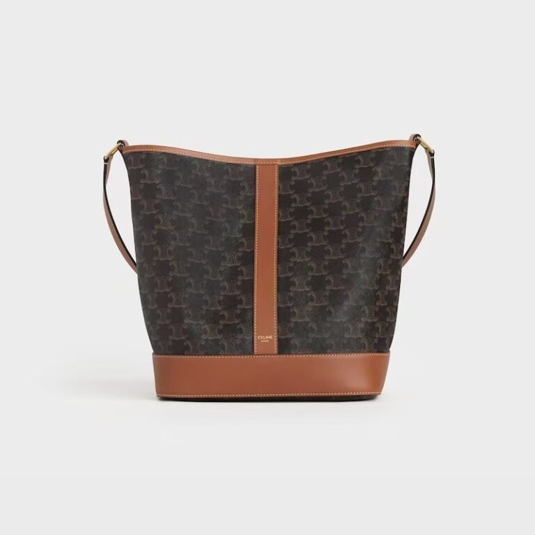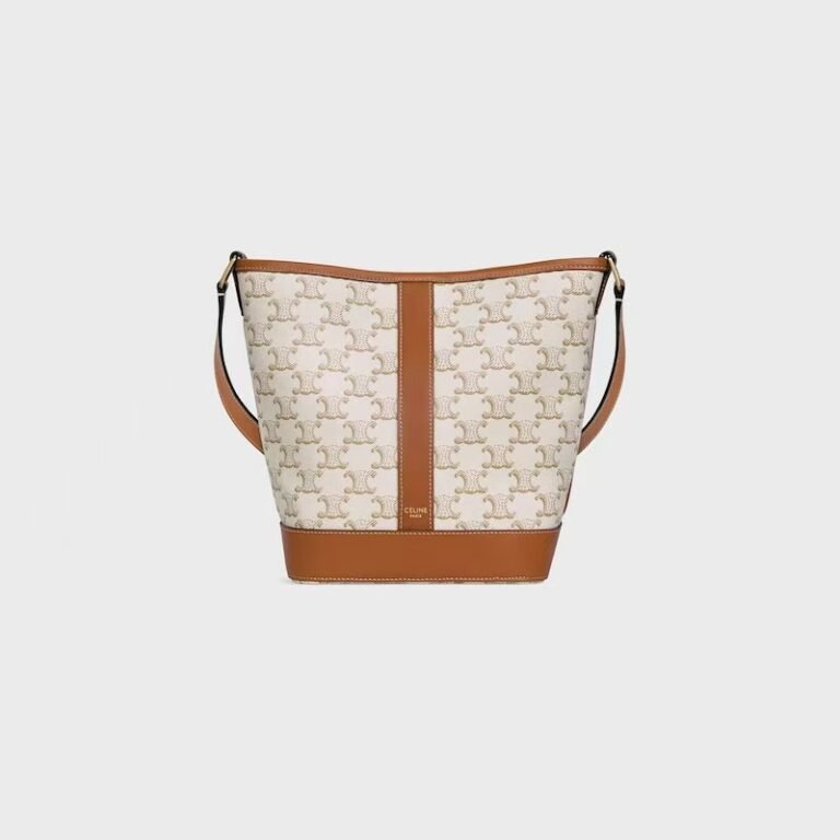 Celine Medium Triomphe Canvas Bucket Bag, Tan Leather Trim