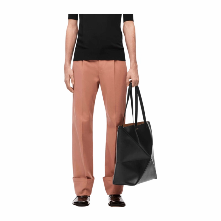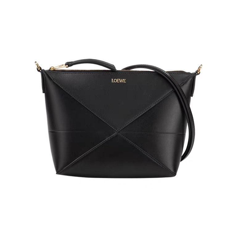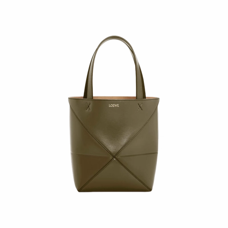 spiration from Japanese origami and LOEWE’s signature Puzzle geometric design, this tote features a foldable 3D-to-flat structure, making it ideal for easy storage and travel. Constructed from premium shiny calfskin with a soft suede lining, it showcases Spanish leather craftsmanship, blending luxurious feel with durability. Lightweight yet robust, the bag offers multiple . Inside, a spacious open-top compartment provides ample storage, while discreet embossed branding adds subtle elegance.