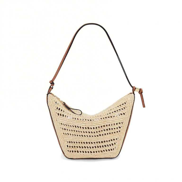 Loewe Mini Hammock Hobo Bag in Raffia and Calf Leather