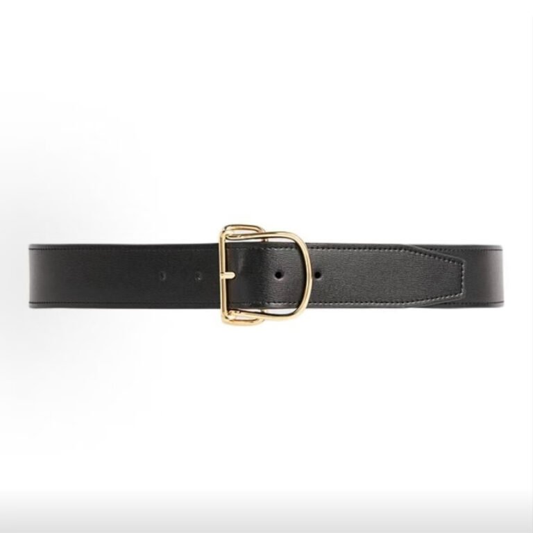 Toteme black leather belt with sculptural Swirl buckle, 4cm width, includes box & dust bag.