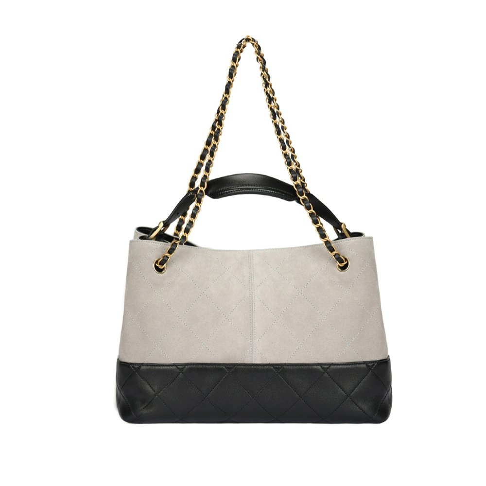 CHANEL 25A Grey Suede Lambskin Two-Tone Patchwork Gold CC Logo Tote Bag