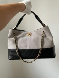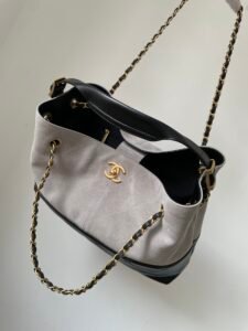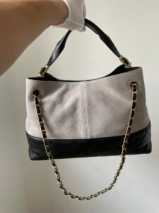 Be the first to review “CHANEL 25A Grey Suede Lambskin Two-Tone Patchwork Gold CC Logo Tote Bag” Cancel reply