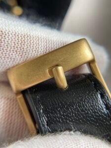 Carry Style: Shoulder carry; iconic leather-woven chain strap with leather rest pad