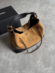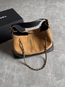 Material: Suede & lambskin two-tone patchwork, fabric lining, gold-tone hardware, interlocking CC emblems
