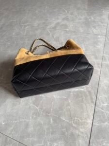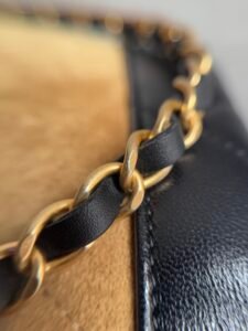 Iconic Details: Interlocking CC logo, classic quilted accents, two-tone suede-lambskin paneling