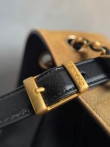 Carry Style: Shoulder carry; iconic leather-woven chain strap with leather rest pad