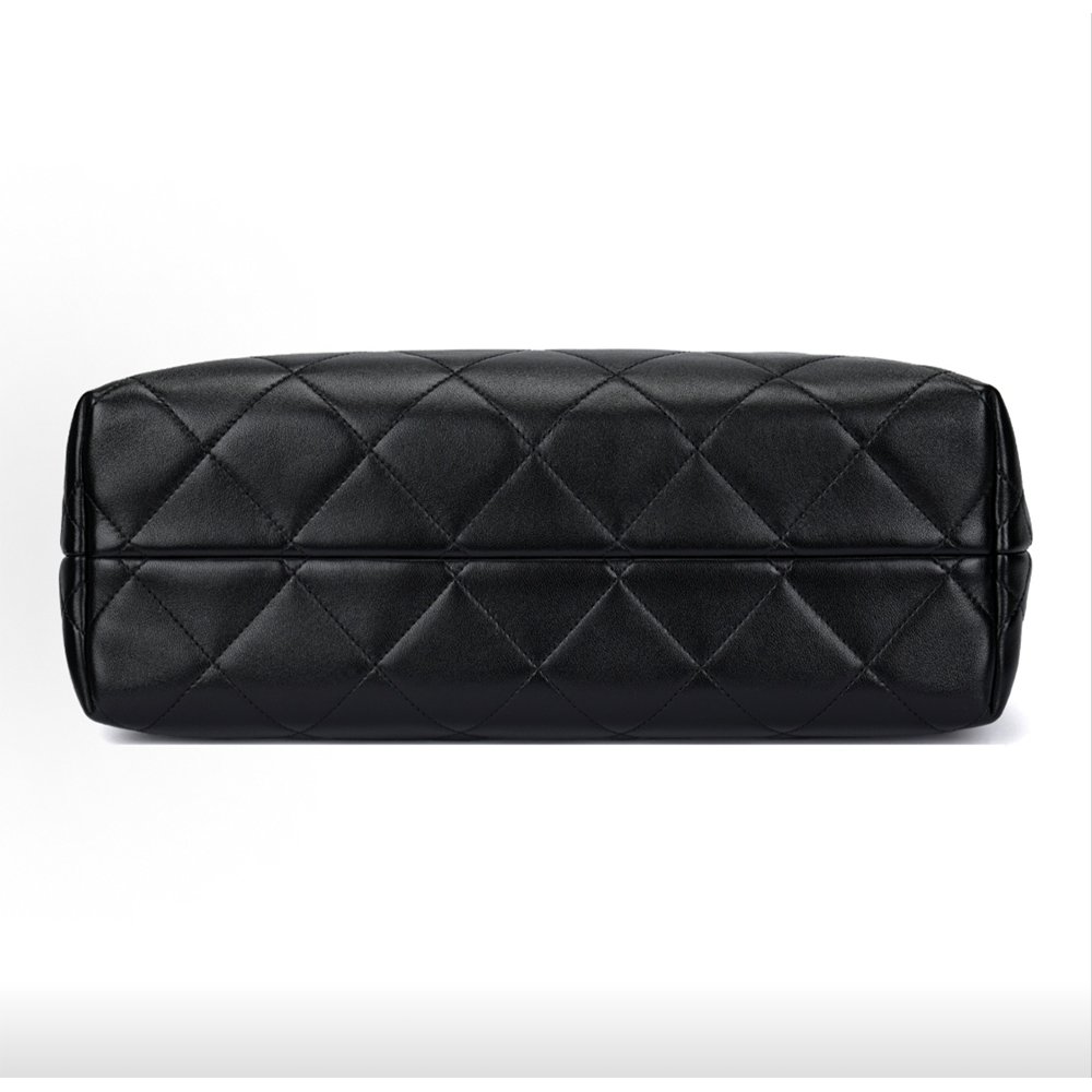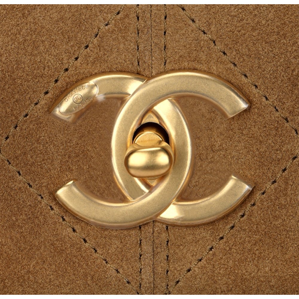 Iconic Details: Interlocking CC logo, classic quilted accents, two-tone suede-lambskin paneling