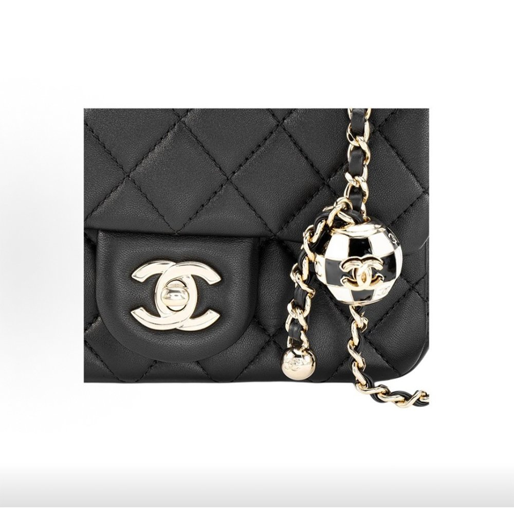 CHANEL 25K FW25 Black Quilted Lambskin Gold-Tone Ball Chain Shoulder Bag