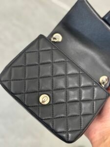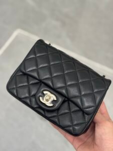 rafted from sumptuous Naplak patent lambskin—soft size:18.5cm*14cm*10cm,yet structured with a signature glossy finish and retro allure—this mini bag is elevated by polished gold‑tone hardware and a prominent front lettering emblem. a lined interior with a slip pocket, and easily holds an iPhone 15 Pro Max plus a Miu Miu mini wallet. Seamlessly transitions from day to night, embodying timeless luxury with everyday practicality.