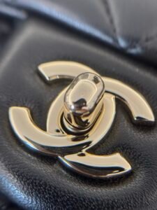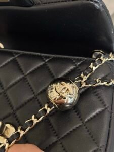 Hardware:Polished gold-tone metal, iconic gold ball chain, interlocking CC logo details