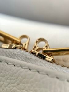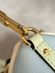 The Express PM is inspired by the Keepall, crafted from calfskin with iconic Monogram lining and trim. It features gold-plated hardware like the signature padlock key fob, ideal for essentials, paying homage to the House’s travel heritage.