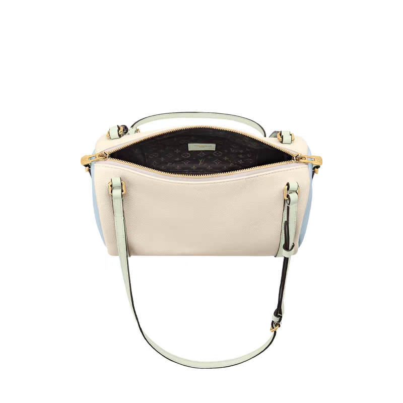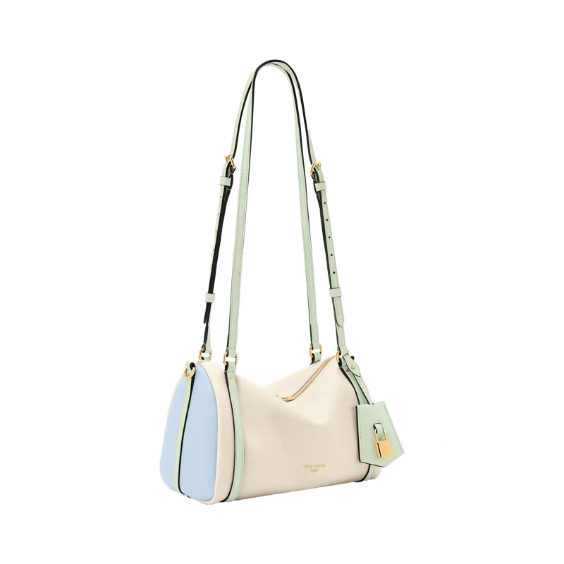 The Express PM is inspired by the Keepall, crafted from calfskin with iconic Monogram lining and trim. It features gold-plated hardware like the signature padlock key fob, ideal for essentials, paying homage to the House’s travel heritage.