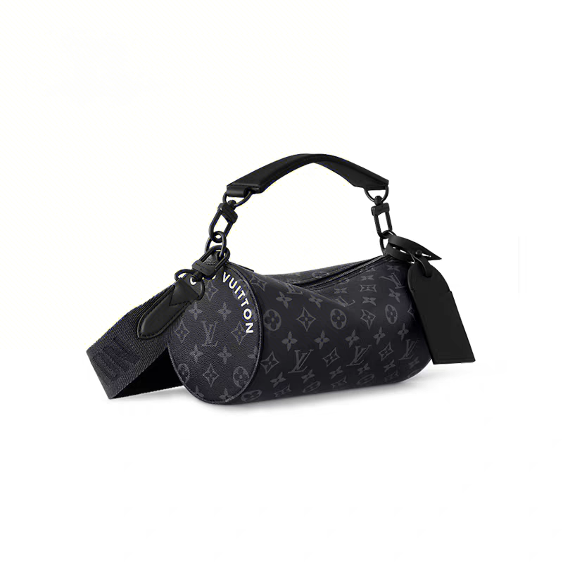 This Soft Polochon PM handbag is crafted from Monogram Eclipse coated canvas in a sleek, compact silhouette, distinguished by a bold LV emblem that asserts its brand identity. It features a removable top handle for hand carry, plus a detachable adjustable jacquard strap woven with the brand monogram, offering shoulder and crossbody wear options.