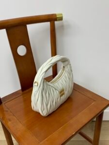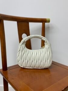 The Miu Miu Wander Matelassé Soft Lambskin HOBO Shoulder Bag perfectly blends retro elegance with modern vitality through the brand’s iconic craftsmanship. Crafted from top-tier soft lambskin, it boasts a cloud-like soft and delicate touch. The classic Matelassé quilting technique creates a full and three-dimensional texture, exuding a fluffy and premium feel without additional filling, making it a highly recognizable design hallmark of the brand.