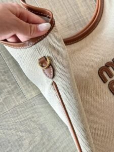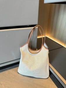 IVY Summer Commuting & Travel Canvas Bag, size:33cm*30cm,a fashionable and versatile item with timeless colors. The size is just right, suitable for all heights. The leather patchwork texture is excellent. With a simple appearance and no redundant decorations, it is both stylish and literary. Made of original factory canvas with two-color weaving technology, the inner lining is linen, exactly the same as the counter version.
