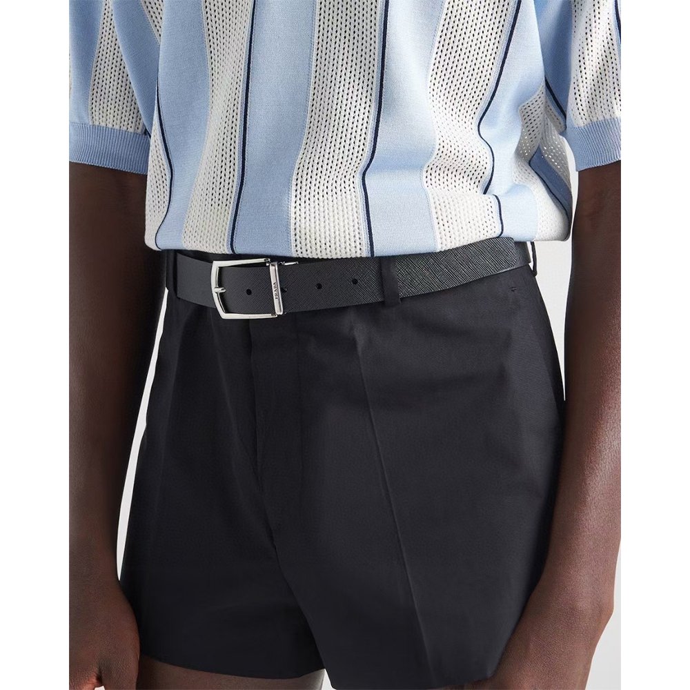 PRADA Black Reversible Belt, Saffiano & Soft Leather