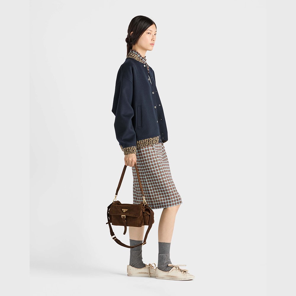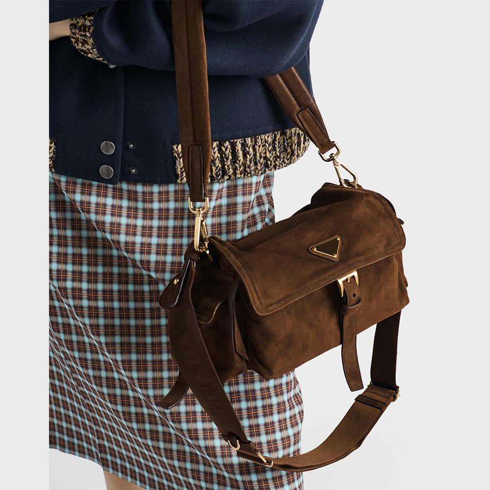 PRADA Explore Brown Medium Suede Sheepskin Shoulder Bag
