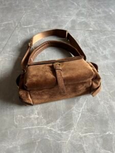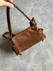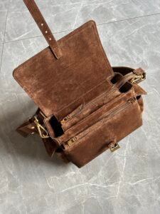suede sheepskin, soft multi-pocket silhouette, sleek & functional, iconic artisanal details