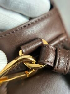 This iconic tote bag is elevated with polished metallic accents and the signature Miu Miu lettering emblem, embodying timeless elegance with instant recognizability. It features top handles, a lined interior with a zippered pocket, and easily accommodates an iPhone 15 Pro Max, a Miu Miu card holder, a Miu Miu large wallet, along with other daily essentials—even a MacBook Pro fits effortlessly inside.