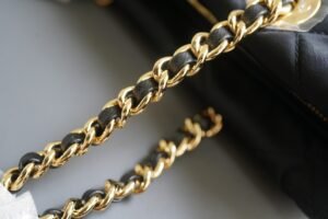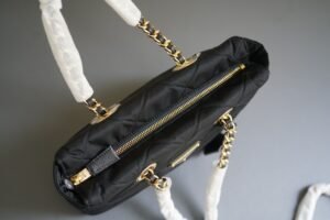 Elevating its aesthetic appeal, the sleek metal hardware complements the luxurious design, and the iconic enameled metal triangle logo prominently displayed on the front adds a statement of prestige and heritage. These exclusive details make the bag a standout accessory, effortlessly blending a modern edge with a classic touch for all fashion-forward individuals.