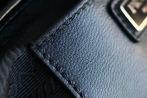 Unisex by design, it combines glossy calf leather with water-resistant nylon fabric and full stainless steel hardware, balancing luxury with durability.
