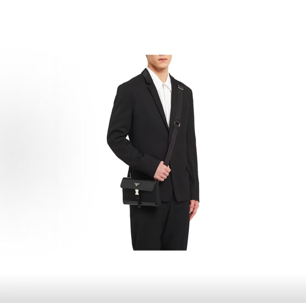 This leather smartphone bag masterfully marries timeless elegance with thoughtful functionality. Embellished with Prada’s signature enameled metal triangle logo, it features an adjustable shoulder strap to suit every styling need.
