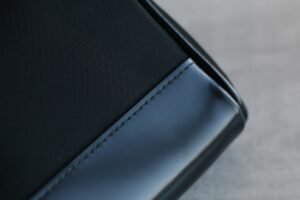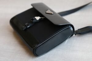 Unisex by design, it combines glossy calf leather with water-resistant nylon fabric and full stainless steel hardware, balancing luxury with durability.