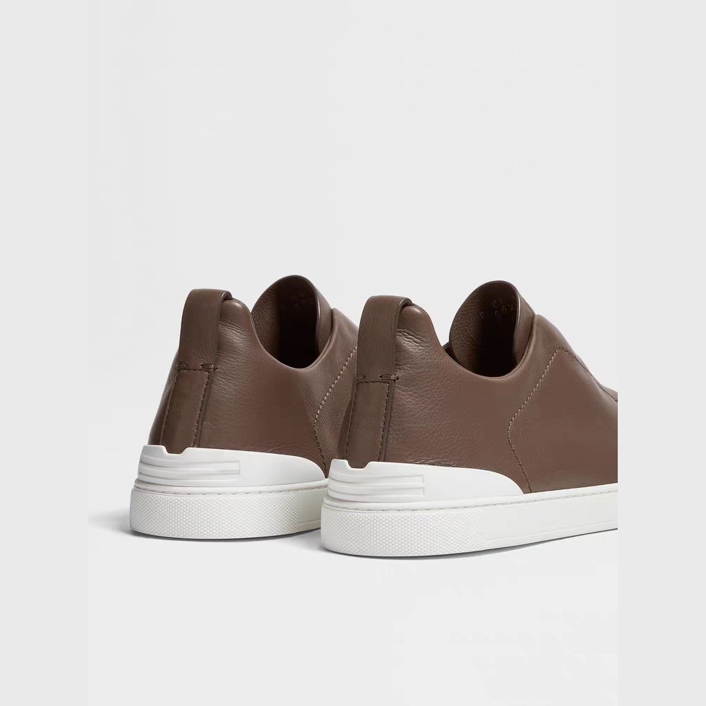 ZEGNA Men’s Brown Triple Stitch SECONDSKIN Calfskin Luxury Casual Shoes