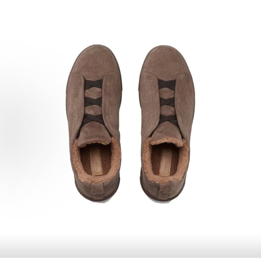 ZEGNA Triple Stitch Leather Wool Warm Casual Shoes Taupe
