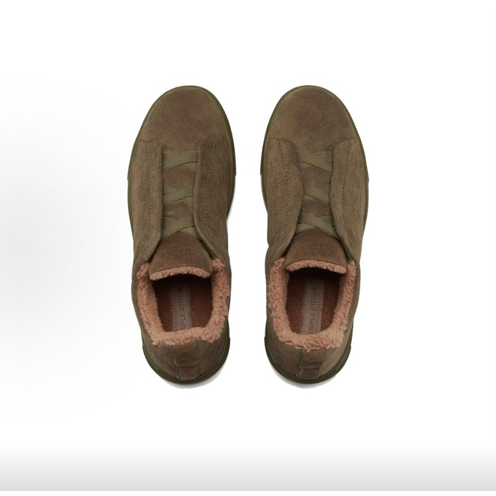 ZEGNA Triple Stitch Leather Wool Warm Casual Shoes Green