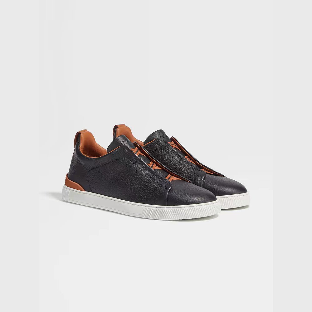 ZEGNA Men’s Deerskin Triple Stitch Luxury Casual Shoes – Black