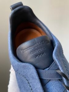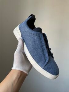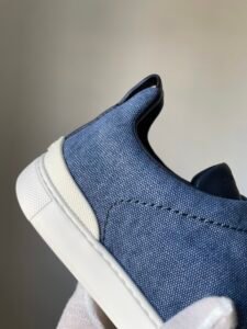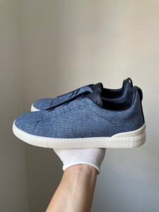 Zegna Triple Stitch Men’s Blue Linen Canvas Slip-on Low-top Sneakers blend iconic design and everyday comfort. Featuring the brand’s signature triple stitch detailing, a breathable premium linen canvas upper and easy slip-on construction, this Italian-crafted pair delivers effortless wear. The classic round toe, sleek low-top silhouette and refined blue hue elevate any casual or smart-casual ensemble—an essential staple for the modern gentleman’s footwear collection.