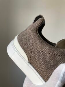 Zegna Triple Stitch Men’s Linen Canvas Slip-on Low-top Sneakers blend iconic design and everyday comfort. Featuring the brand’s signature triple stitch detailing, a breathable premium linen canvas upper and easy slip-on construction, this Italian-crafted pair delivers effortless wear. The classic round toe, sleek low-top silhouette elevate any casual or smart-casual ensemble—an essential staple for the modern gentleman’s footwear collection.